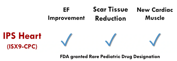 Using our patented heart therapeutic, ISX9-CPC creates new cardiac muscle and replaces dead scar tissue and restore cardiac function. While our published efficacy applies to the larger MI/heart failure population, our initial clinical focus will be to prove our therapy in a smaller patient population in duchenne cardiomyopathy which is also the ultimate source of death for DMD patients. Given our completed FDA PRE-IND meeting & ongoing GMP manufacturing program that started in 2019, we believe we will have the first IND in the United States with ISX9-CPC. In addition, the FDA has granted us orphan designation in 2022.